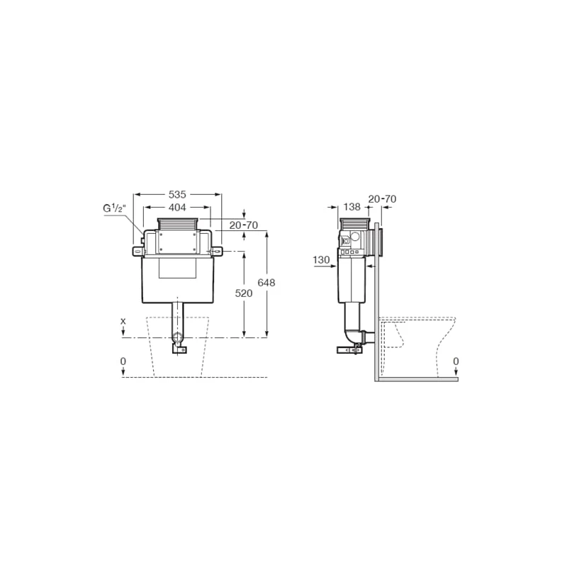 Concealed cistern for back to wall WCs