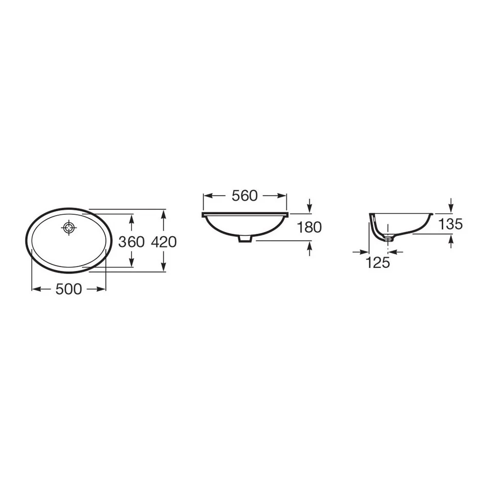 Berna Under-Countertop Basin, 0 Tap Hole, 560mm Wide