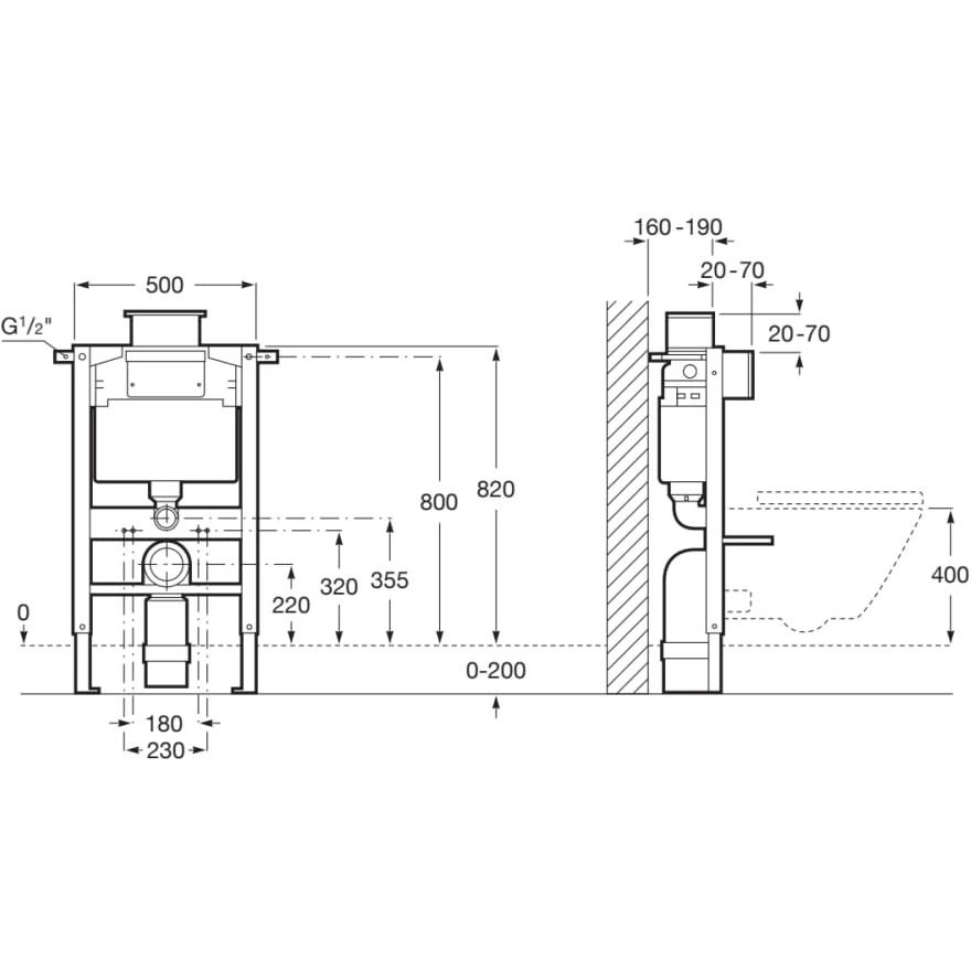 820mm high concealed cistern and frame for wall hung WCs