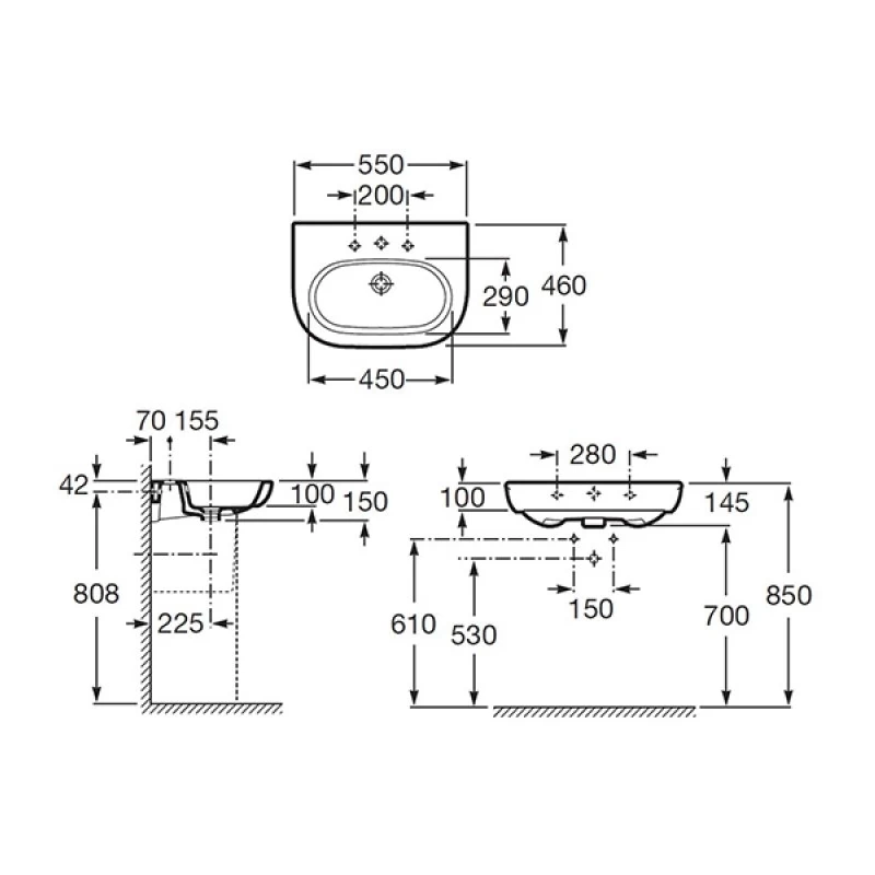 Roca Meridian-N 550mm 1 Tap Hole Basin and Full Pedestal Pack