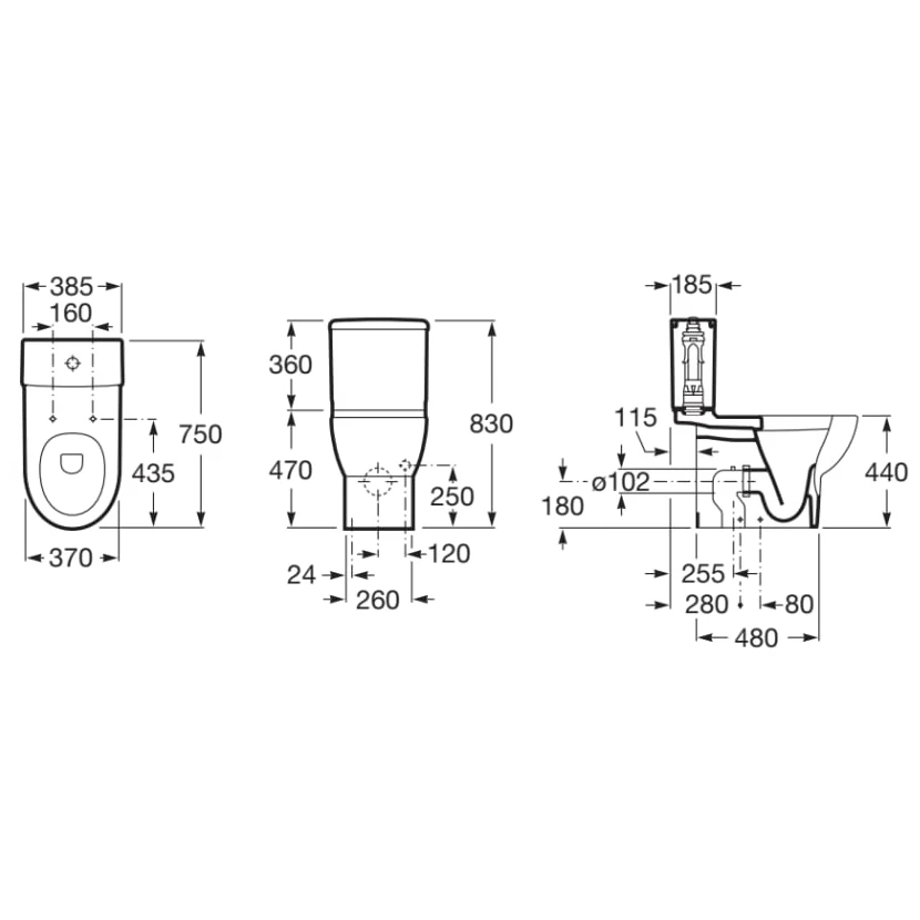 Roca Meridian-N Vitreous China close coupled WC with dual outlet