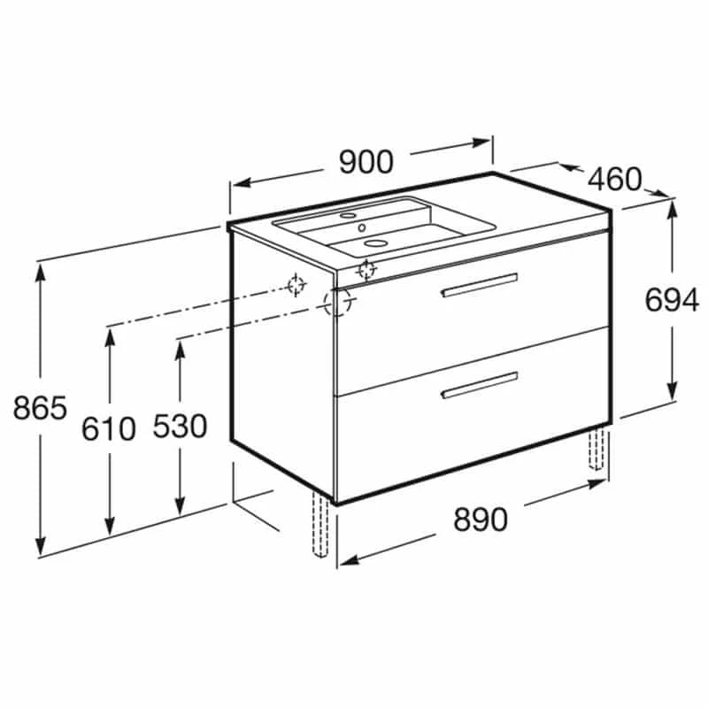Prisma Wall Hung Washbasin Unit Only, 2 Drawer, 890mm Wide, Ash and White