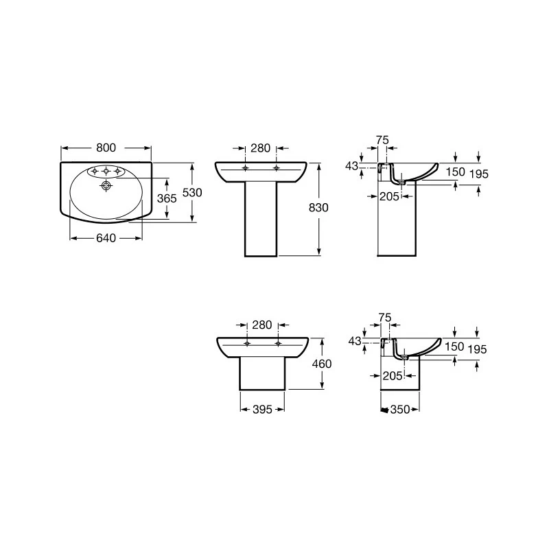 Senso Vitreous china semipedestal for basin