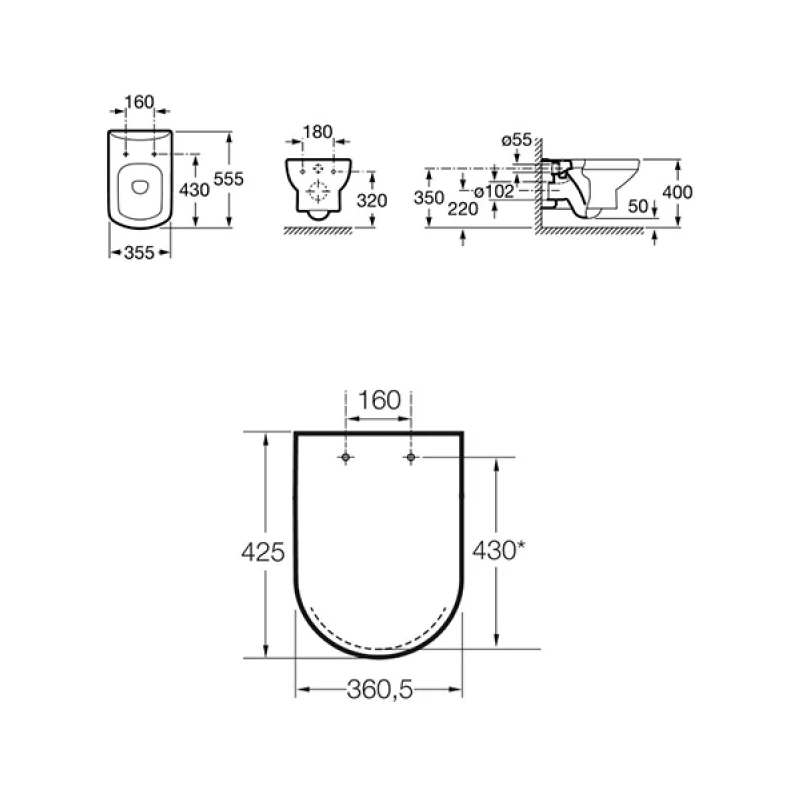 Roca Senso Wall Hung WC Pan and Standard Toilet Seat