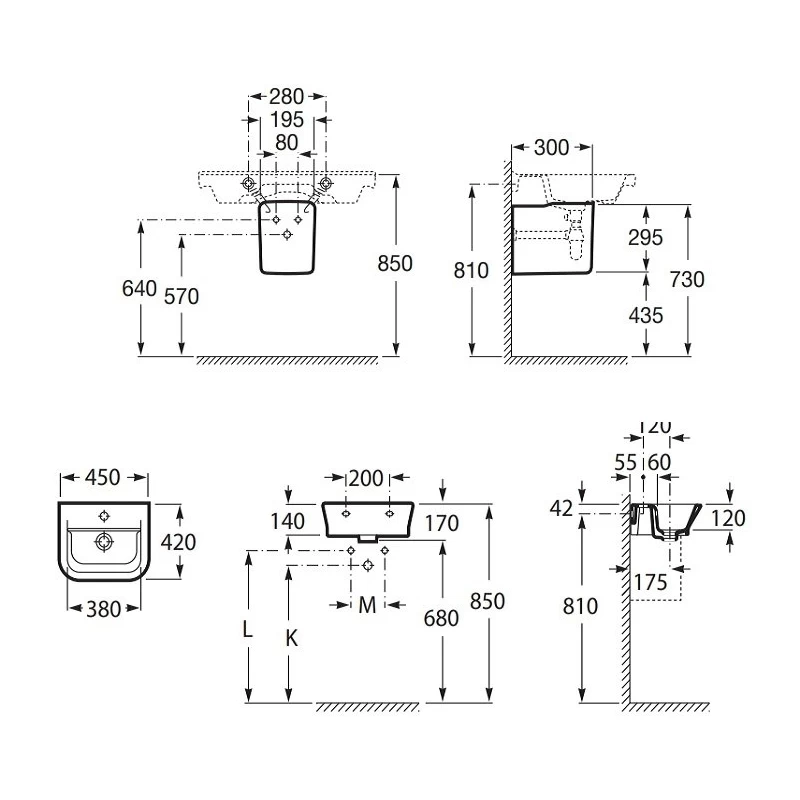Roca The Gap 450mm 1 Tap Hole Basin and Semi Pedestal Pack