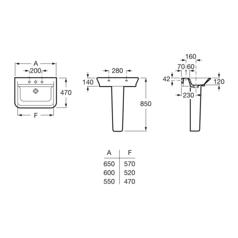 Roca The Gap 650mm 1 Tap Hole Basin and Full Pedestal Pack