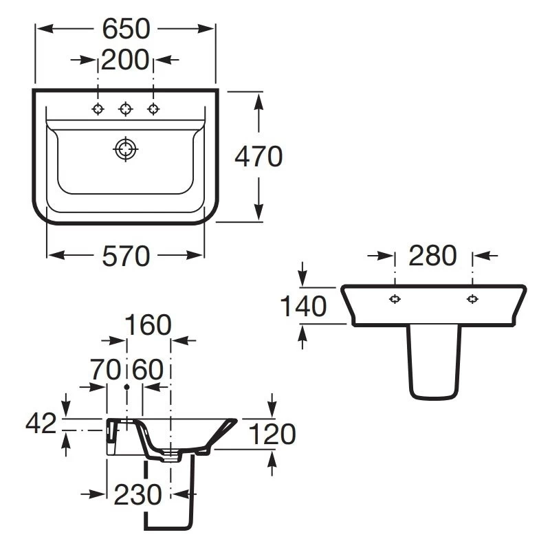 Roca The Gap 650mm 1 Tap Hole Basin and Semi Pedestal Pack