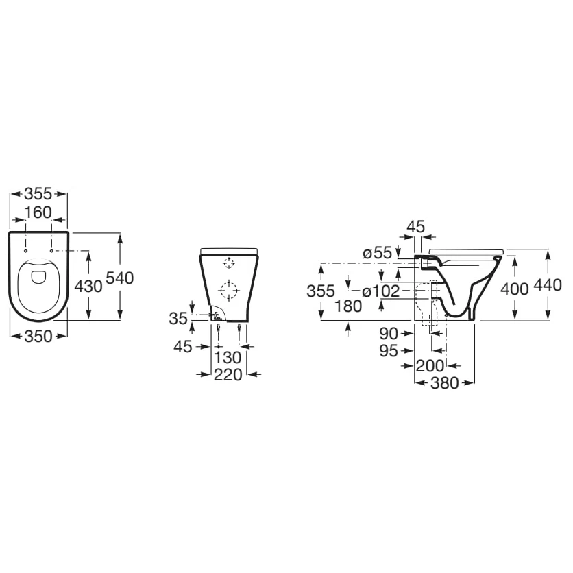 Roca The Gap Round Rimless back to wall WC pan with dual outlet
