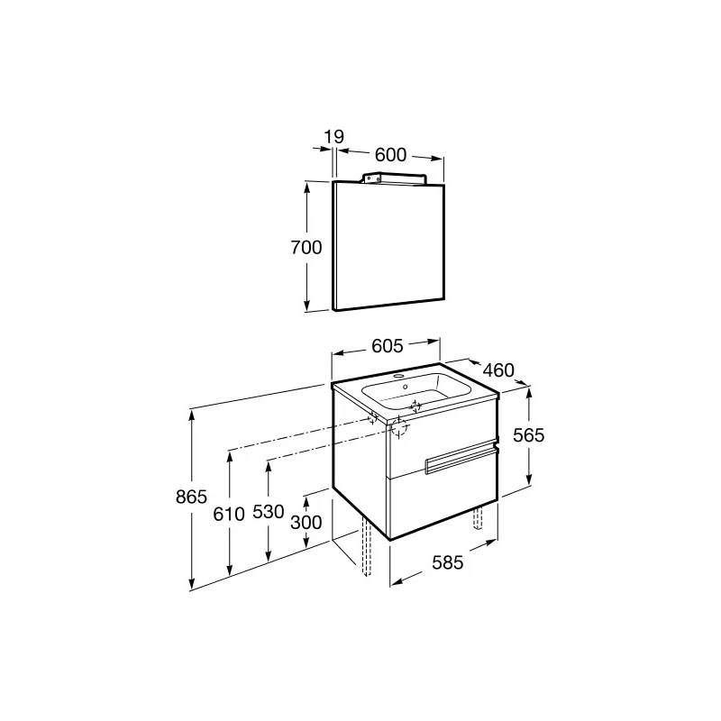 Mirror Height: 700mm, length: 600mm, width: 19mm