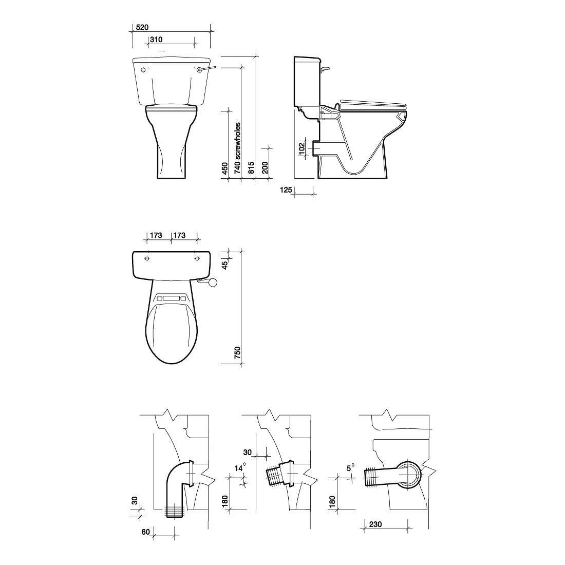 Avalon close coupled toilethorizontal outlet 6l flush