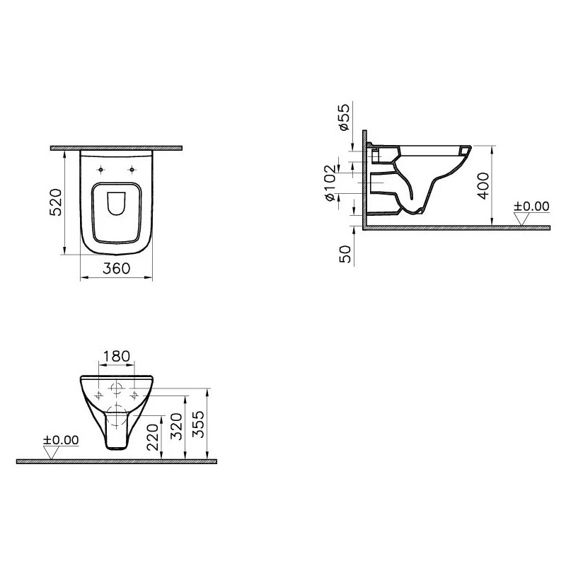 S20 Wall-Hung WC Pan 52cm